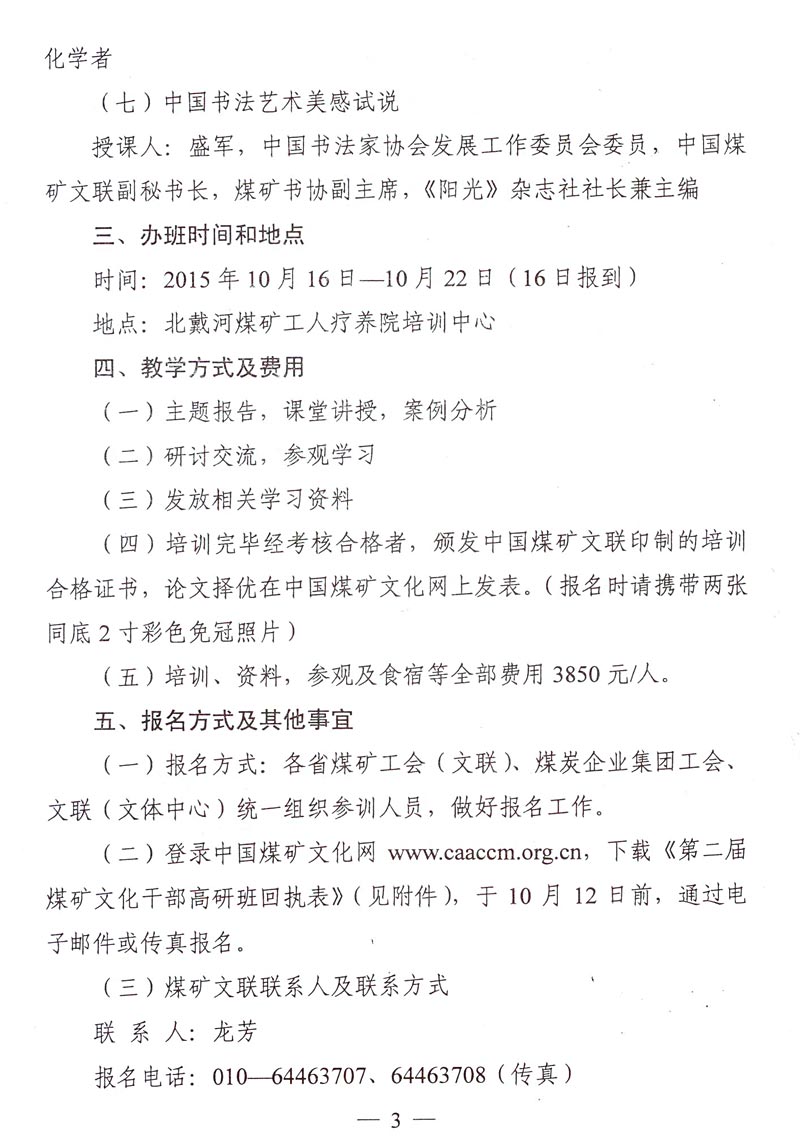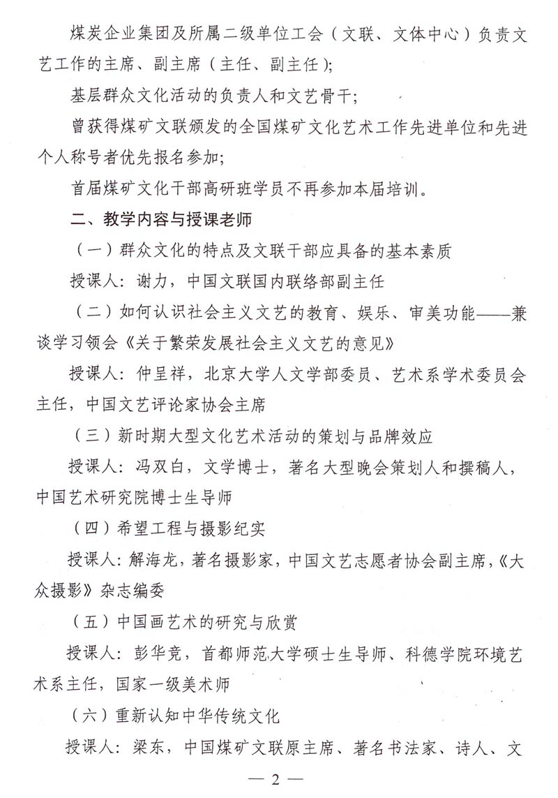 關(guān)于舉辦第二屆煤礦文化干部高研班的通知