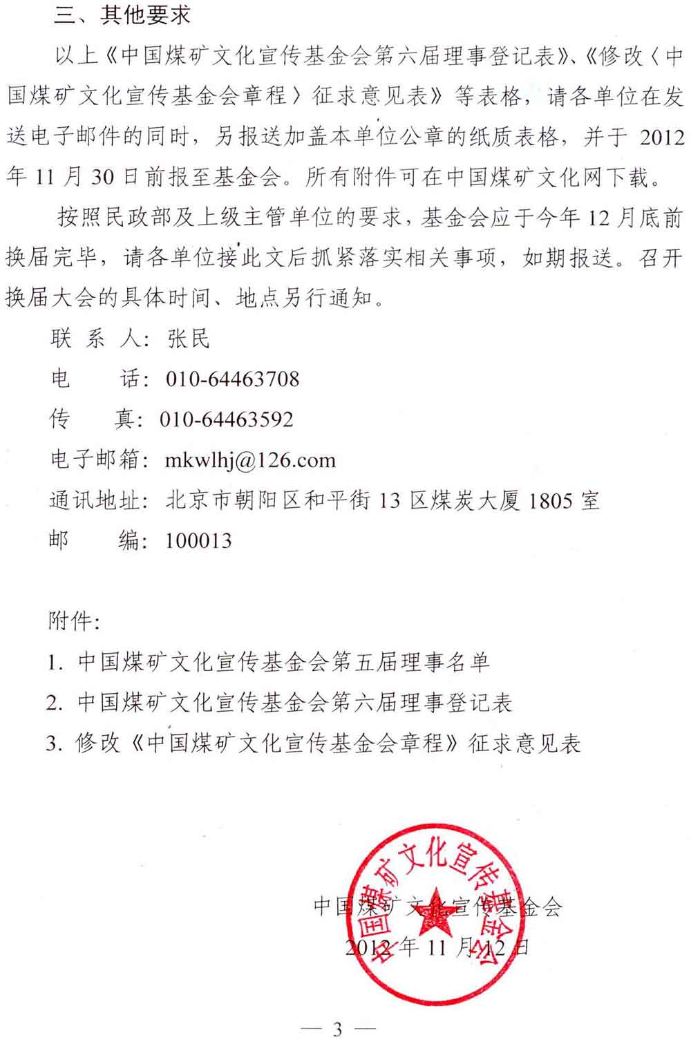 關(guān)于做好中國(guó)煤礦文化宣傳基金會(huì)第六屆理事會(huì)籌備工作的通知