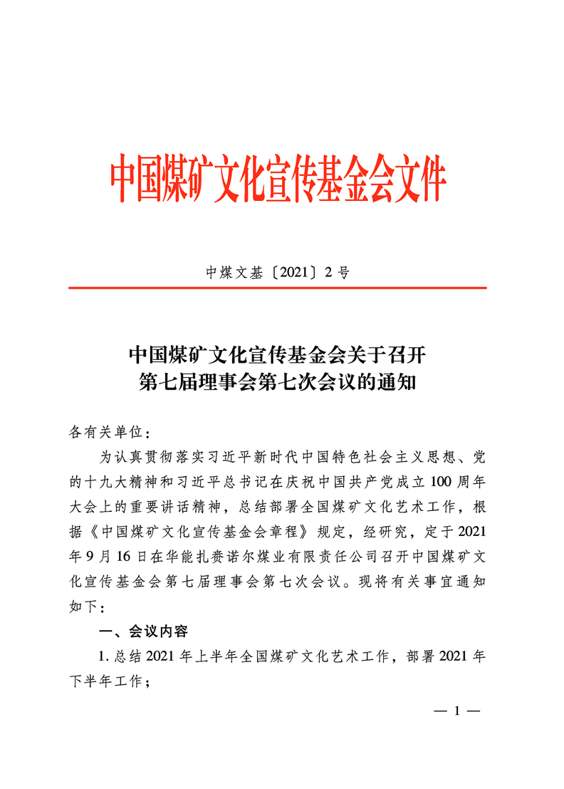 中國煤礦文化宣傳基金會關于召開第七屆理事會第七次會議的通知
