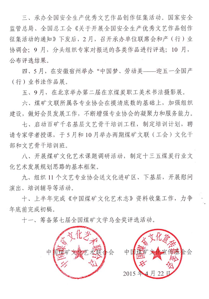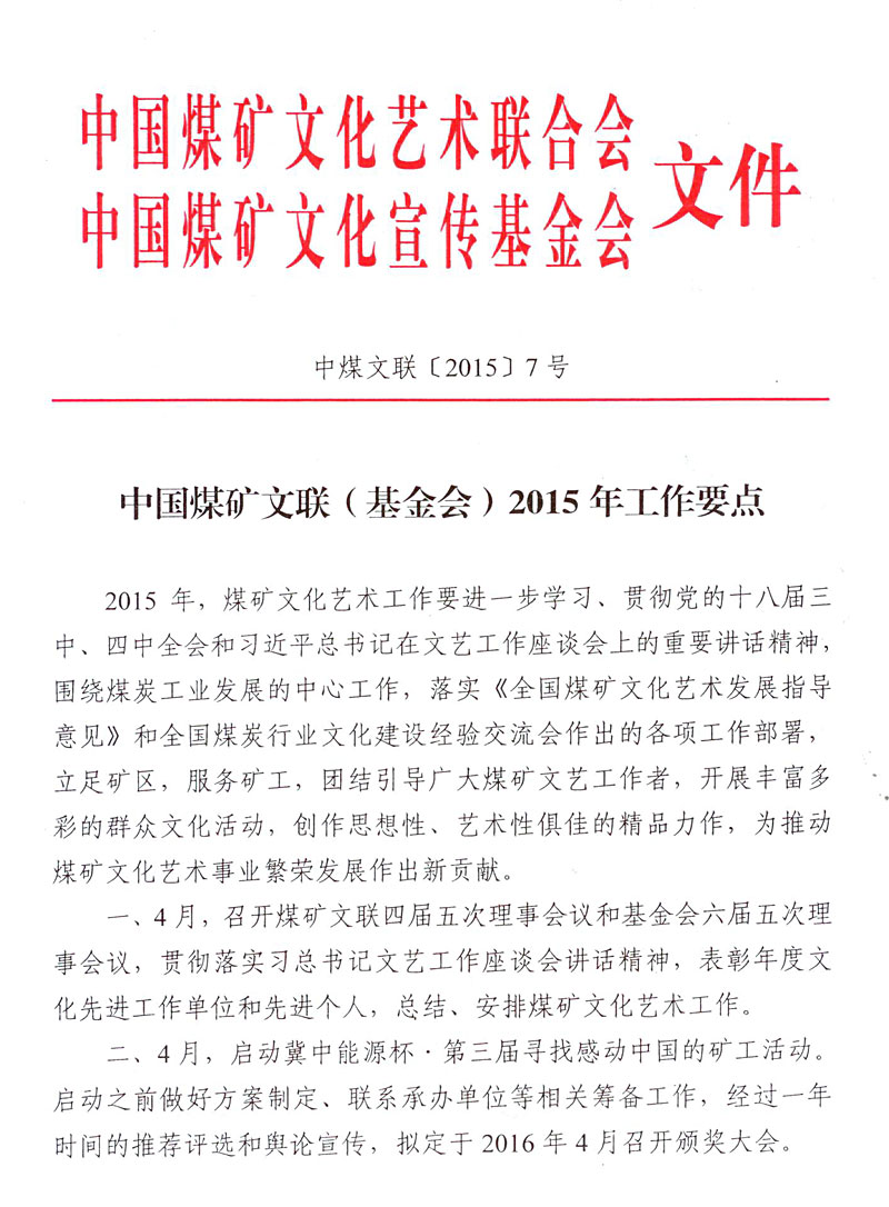 中國煤礦文聯(基金會)2015年工作要點