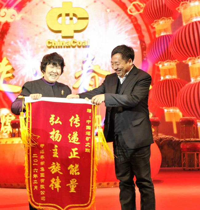 在演出開始前,劉勇代表中煤平朔集團公司向龐崇婭贈送了“傳遞正能量,弘揚主旋律”錦旗。劉俊代表中國煤礦文聯作了講話,并向平朔公司的全體職工及家屬致以節日的問候。