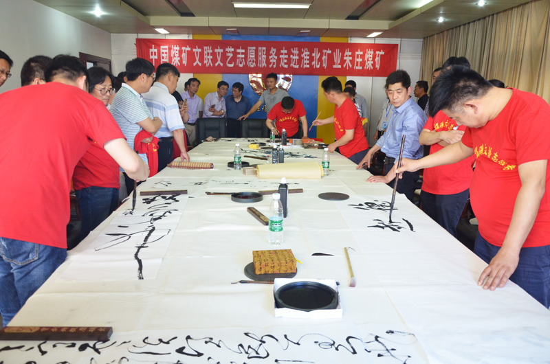 5月14日至16日,在第五個“中國文藝志愿者服務日”即將到來之際,中國煤礦文聯、中國煤礦文聯志愿者協會、中國煤礦文聯書法家協會共同組織文藝志愿者服務團到安微淮北礦業集團開展文藝志愿服務活動。中國煤礦文化宣傳基金會理事長、中國煤礦文聯副主席龐崇婭帶隊,中國煤礦文聯副主席徐迅,中國煤礦文聯副秘書長、中國煤礦文聯書協副主席兼秘書長盛軍,中國音樂家協會理事、開灤藝術團團長王海天,中國煤礦文工團說唱團演出隊隊長、青年演奏家李鑫,中國煤礦文聯美協副主席張光旭,中國煤礦文聯書協副主席馬銘、副秘書長閆增、理事胡瑞仲、理事苗超群,《中國藝術報》記者蒲波,《中國煤炭報》記者孫寶福和淮北礦區的書畫藝術家等20多人參加了文藝志愿服務。文藝志愿者和中國煤礦文聯書協主席、淮北礦業集團黨委常委、工會主席張宇,淮北礦業股份公司副總經理陳亞東一同在朱莊煤礦為礦工們送上了精彩的文藝演出和書法、美術、篆刻作品,并舉辦了聲樂講座。