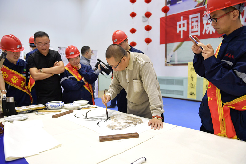 “今天我們安排了基層的5名書法家來到現場加入文藝志愿服務隊伍,既是想為工人師傅們多創作一些作品,同時也是希望與煤礦文聯請來的各位藝術家有更多更緊密地交流,這對鍛煉文藝骨干和提升礦區文藝創作水平都是很好的機會?!睏钫枷冉榻B到。