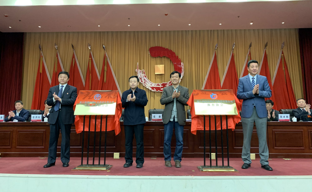 張強(左二)、包雙林(右一)、范碩(右二)、趙鵬飛(左一)為邯礦集團文聯、體協揭牌