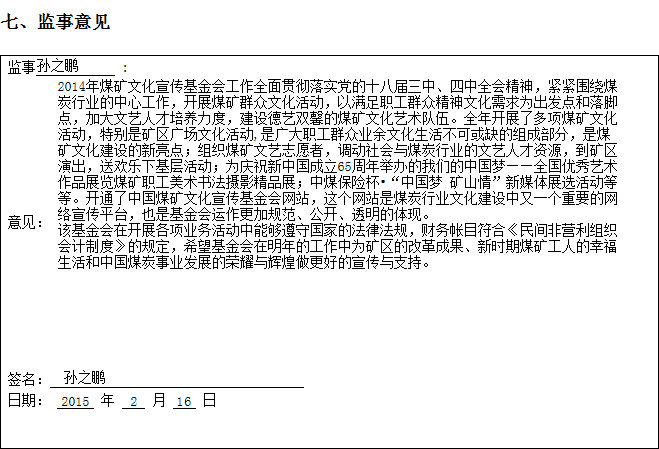 中國煤礦文化宣傳基金會2014年度工作報告(摘要) 來源: 作者: 時間:2016-01-29 【字體:小 大】 中國煤礦文化宣傳基金會2014年度工作報告(以下簡稱“報告”)已經登記管理機關審查通過,根據《基金會管理條例》規定,現將報告(摘要)公布如下: 智能標簽: 工作報告 相關內容 分享到: 【打印正文】