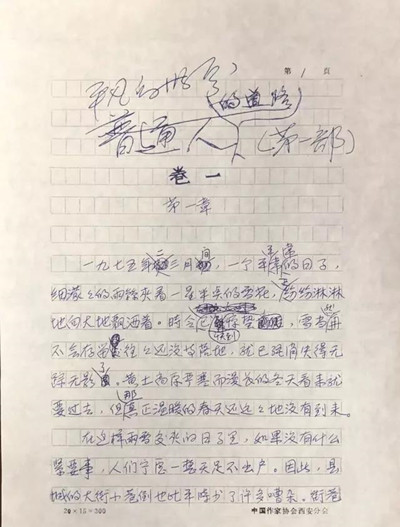 《平凡的世界》手稿,小說原名《普通人的道路》。資料圖片