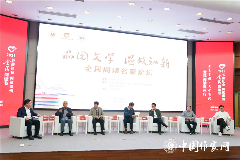 4月23日下午,由中國作協主辦的“品閱文學 溫故知新”全民閱讀主題論壇在溫州大學舉辦,中國作協書記處書記邱華棟出席論壇并發表主題演講,中共溫州市委常委、宣傳部部長胡劍謹、溫州大學黨委書記謝樹華出席論壇并致辭,中國作協社聯部二級巡視員豐玉波,浙江省作協黨組成員、秘書長晉杜娟、中共溫州市委宣傳部副部長市新聞出版局局長梅陽等出席論壇,作家劉兆林、王久辛、肖克凡、徐則臣、鐘求是與溫州大學人文學院院長孫良好圍繞“品閱文學 溫故知新”全民閱讀主題參與論壇討論,中國作協部分團體會員單位代表、主管社團代表、溫州市作協、溫州市網絡作協人員以及溫州大學師生和讀者代表參加了論壇。論壇由中國作協社聯部副主任李曉東主持。
