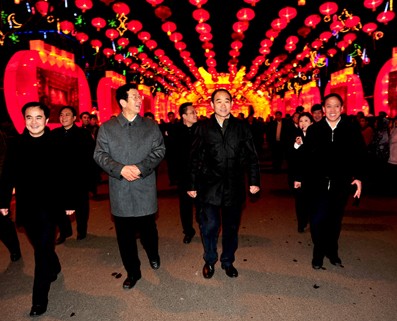 潞安集團領導王安民、李晉平、王俊彥、張萬金、王觀昌、劉斌等與前來調研座談的長治市市委書記田喜榮、市委常委秘書長李東峰、副市長省尚憲芳、市屬國有大中型企業領導及上千的職工家屬參加了盛大的開幕式。隨后,各級領導在潞安集團領導的陪同下參觀了造型別致的各類彩燈。