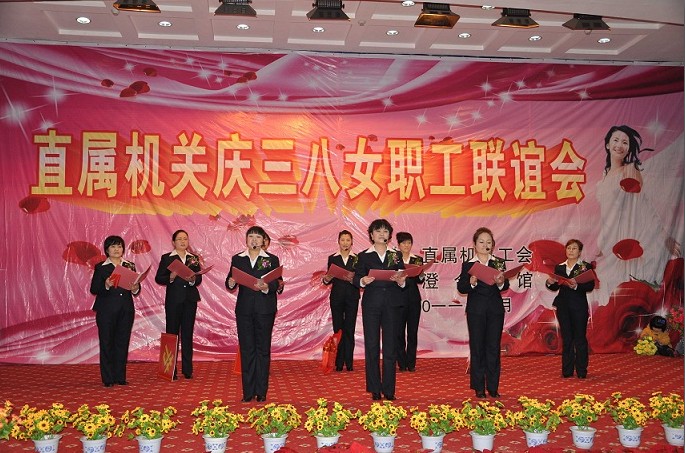 聯誼會在歡樂祥和的氣氛中開始,一曲歡快的舞蹈《歡聚一堂》拉開了演出的帷幕。女工們扭動婀娜的身姿,舞動美麗的手帕,舞出了對美好生活的憧憬。詩朗誦《獻給母親的歌》、《我們是平凡的信息女工》,字字抒真情,句句展風采,深深的感動了現場每一位觀眾。現代舞《浪漫櫻花》,明快的節奏、動感的旋律,展現了賓館員工積極向上的精神風貌,同時也為現場觀眾帶來視覺上的完美沖擊。女聲獨唱《新貴妃醉酒》,婉轉地旋律,柔媚的唱腔,博得了臺下觀眾熱烈的掌聲。黃梅戲《對花》、手語操《手牽手》、小品《賓館奇遇》、三句半《夸夸賓館好員工》、時裝秀等,一個個機關女工精心編排的節目,充分表達了大家歡慶節日的喜悅心情。