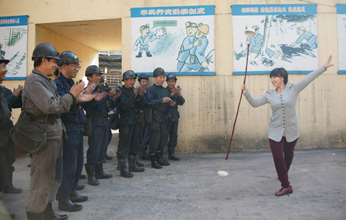 為充分發(fā)揮礦井安全生產(chǎn)二道防線(xiàn)的作用,10月17日下午,山東能源新礦集團(tuán)黑溝煤業(yè)公司女工委組織家屬協(xié)管員與文藝骨干,組成安全文藝小分隊(duì),為上下井的一線(xiàn)職工送上了以決戰(zhàn)四季度合力保安全為主題的文藝演出,叮囑廣大職工緊繃安全弦,按章操作,確保實(shí)現(xiàn)四季度安全生產(chǎn)的各項(xiàng)工作目標(biāo)。圖為該煤業(yè)職工表演的雜技節(jié)目《舞流星》。