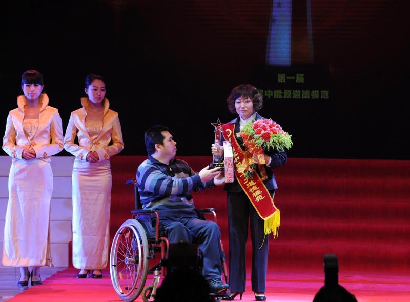 頒獎晚會上,全國道德模范郭明義也專門以VCR的形式為十大道德模范人物致上了頒獎辭。