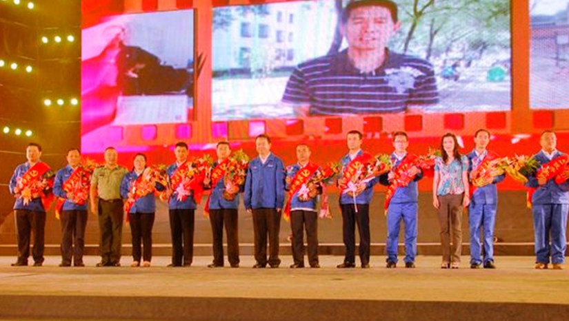 演出過程中,山西焦煤黨委常委,西山煤電集團公司董事長、黨委書記薛道成,西山煤電集團公司副董事長、總經理王玉寶,中國廣播電視協會電視劇導演工作委員會常務副會長,著名導演金韜,大眾電影百花獎獲得者、著名演員吳軍,大眾電影百花獎獲得者、青年影視演員閻青妤共同為榮獲西山煤電集團公司黨風廉政建設先進單位和優秀共產黨員頒獎并合影留念。