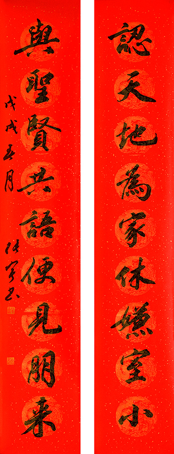作品名稱:對聯《認天與圣》尺寸:180×32cm×2
