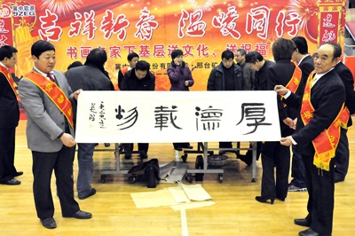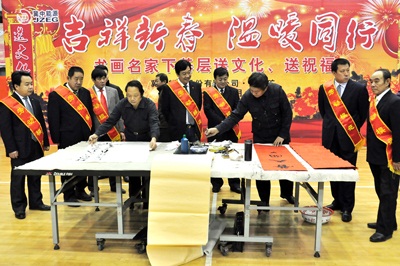 瑟瑟寒冬,溫暖同行。元月24日下午3時,冀中股份公司工會組織的吉祥新春、溫暖同行邢臺市書畫名家下基層送文化、送祝?;顒觼淼叫吓_礦。該礦勞動模范、書畫協會成員及職工家屬參加了此次活動。