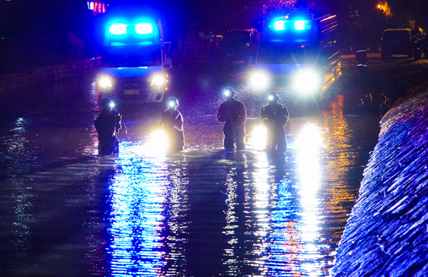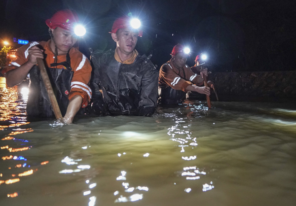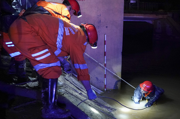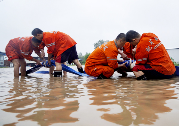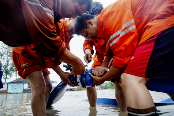8月12日20時,山東能源淄礦救護大隊在青州市譚坊鎮(zhèn)的鐵路涵洞積水處進行水泵安設(shè)作業(yè)。攝影:袁宏山東能源新聞中心