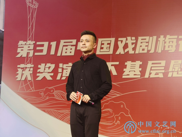 郝士超為大家帶來自己的拿手好戲《林沖夜奔》選段,引得現場叫好聲不斷。他表示將苦練多年的技藝奉獻給觀眾是梅花獎的精神所在,也希望今后抓住每一次的基層演出機會,讓自己家鄉的劇種能更加走近大眾生活。