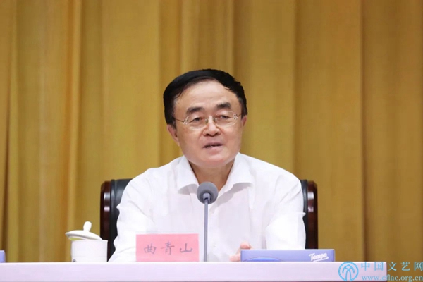6月16日,中國文聯在中國文藝家之家舉辦學習貫徹習近平新時代中國特色社會主義思想主題教育專題輔導講座。圖為中共中央黨史和文獻研究院院長曲青山作輔導講座。