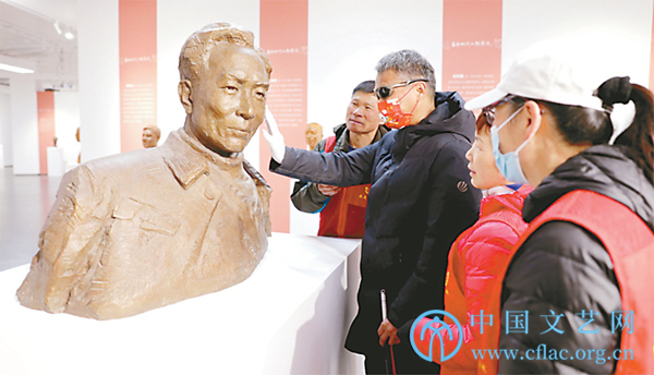 就在2023年3月20日,伴隨中國美術館“為新時代人物塑像”作品巡展走進張家港市美術館,一場特別為視障觀眾開啟的“觸摸藝術”專場活動正在進行……通過讓視障觀眾觸摸一件件雕塑作品以及聆聽被塑者背后感人的故事,使他們感知到新時代先進人物的精神力量。參觀后,他們興奮地表示,這還是第一次正式參觀美術展覽,以這種特殊方式感受新時代英雄楷模給予自己的向上向善之美,是一次難忘的暖心之旅,中國美術館將繼續以潤物細無聲的方式用藝術之美和大愛之心給予殘障人士心靈上最大的愛。