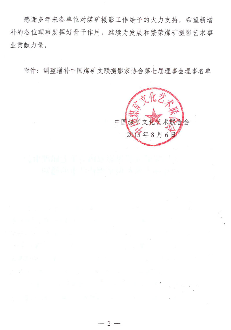 關于中國煤礦文聯攝影家協會第七屆理事會增補副主席和調整增補理事的通知
