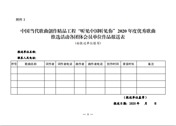 “聽見中國聽見你”2020年度優(yōu)秀歌曲推選活動通知