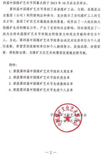 關(guān)于表彰在第四屆煤礦藝術(shù)節(jié)活動中做出突出貢獻(xiàn)的單位和個人的決定