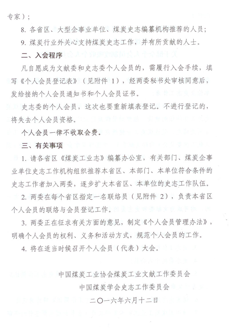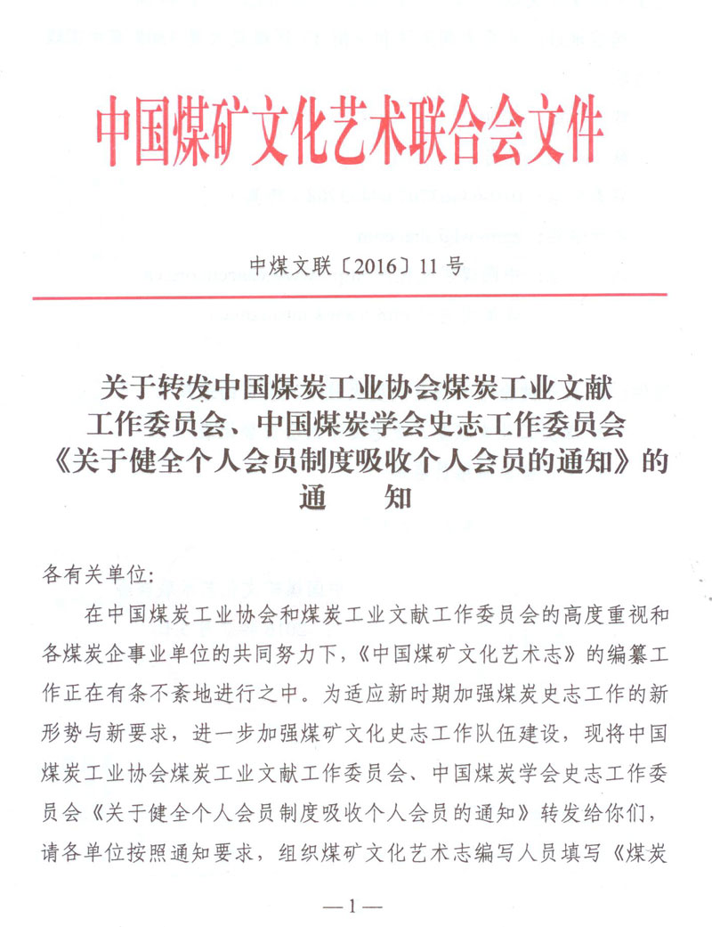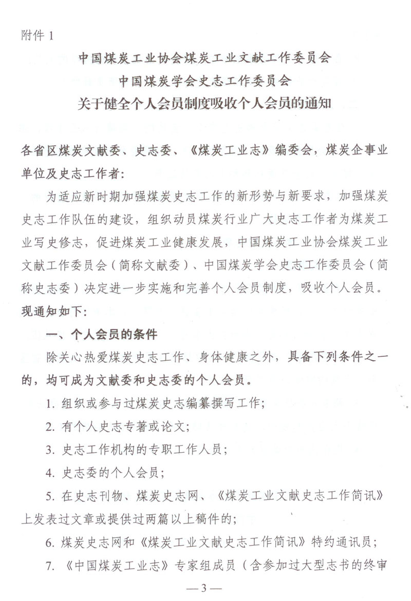 關于轉發中國煤炭工業協會煤炭工業文獻工作委員會、中國煤炭學會史志工作委員會《關于健全個人會員制度吸收個人會員的通知》的通知
