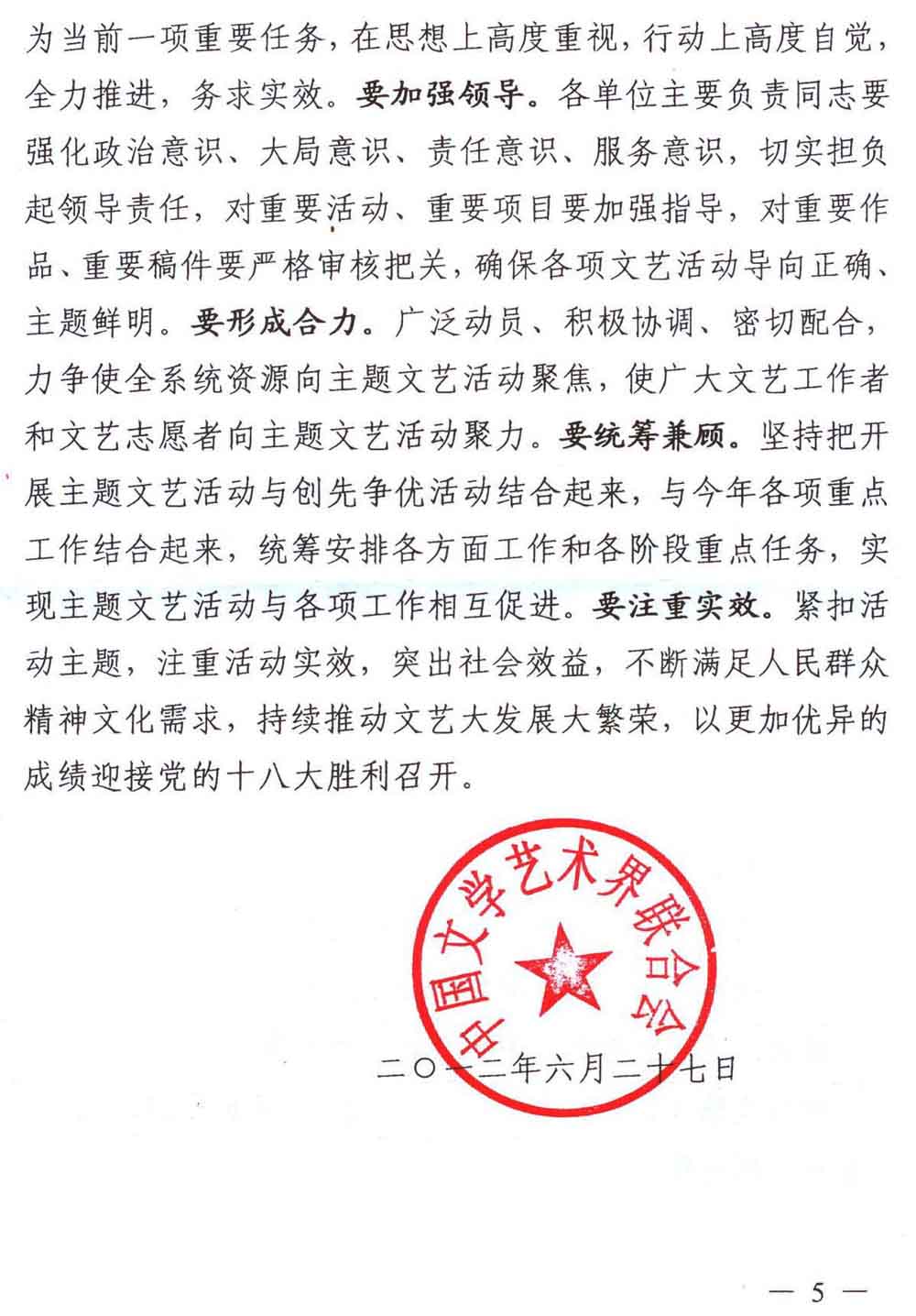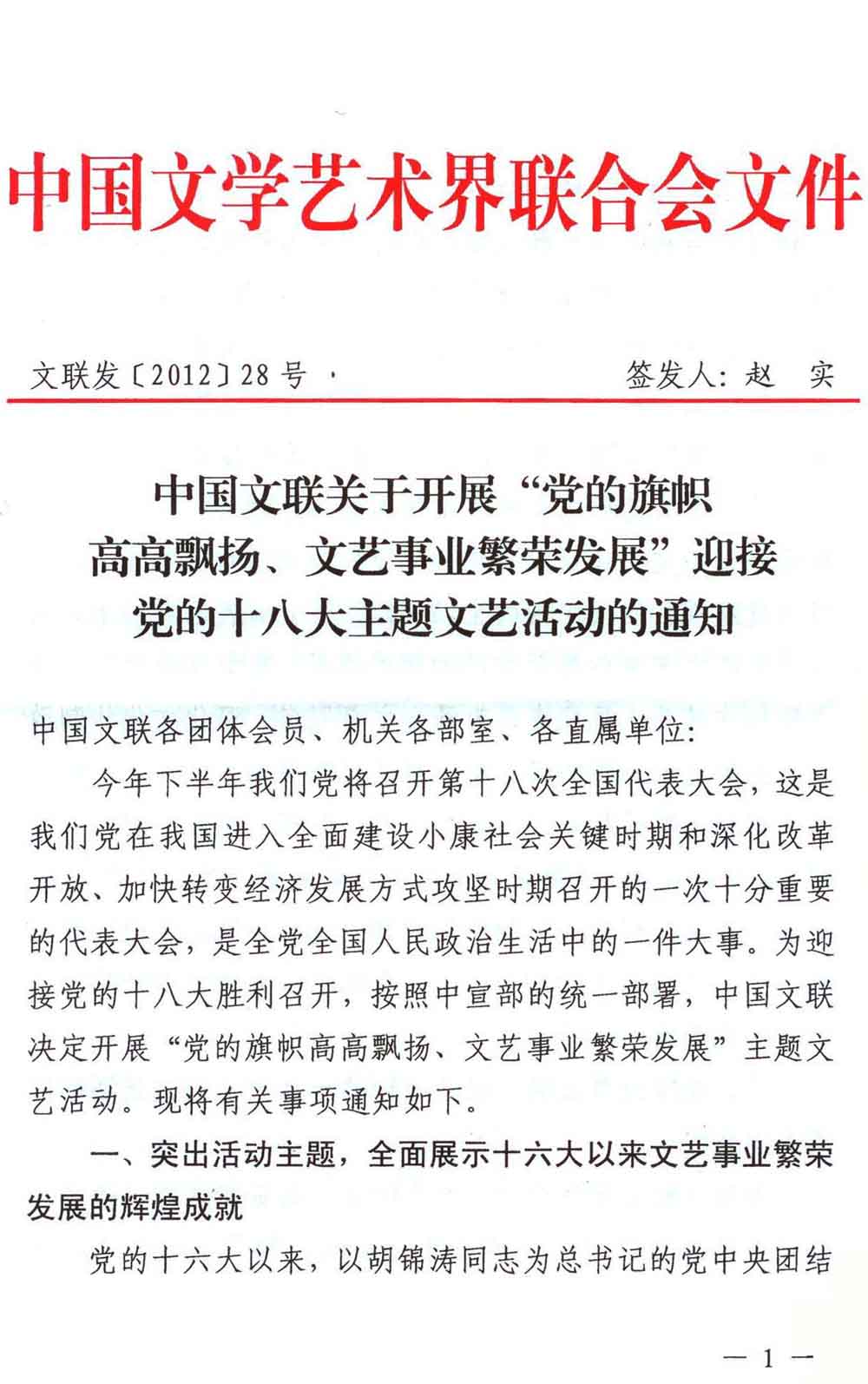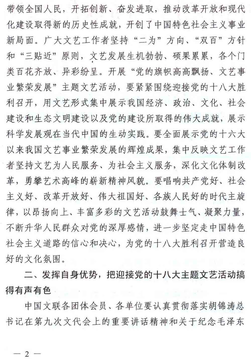 中國文聯關于開展“黨的旗幟高高飄揚、文藝事業繁榮發展”迎接黨的十八大主題文藝活動的通知