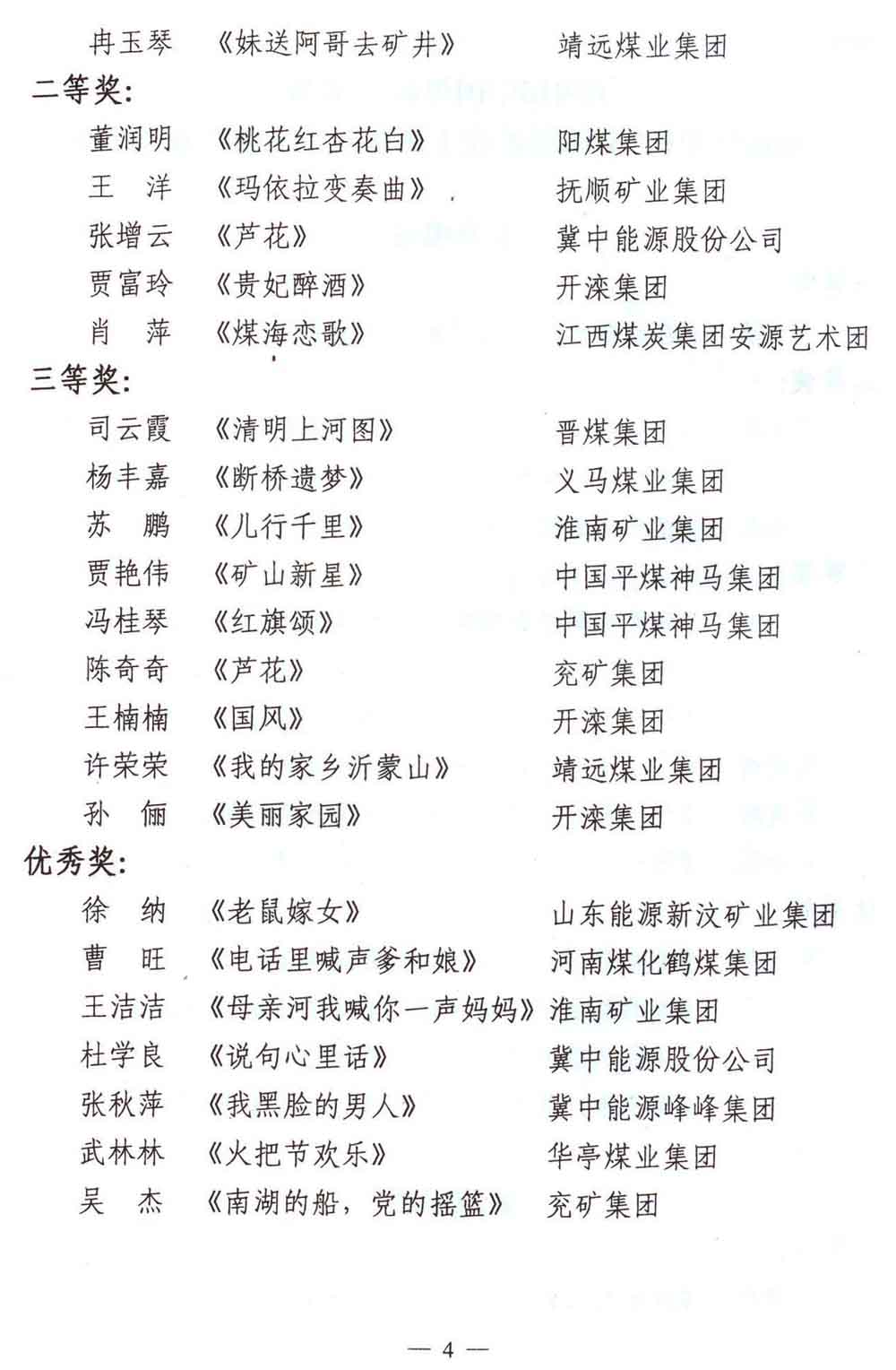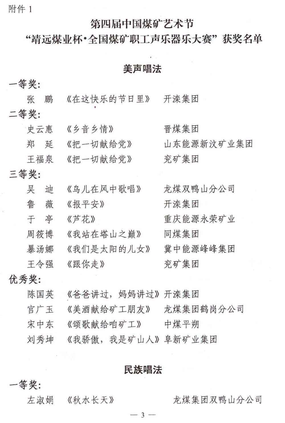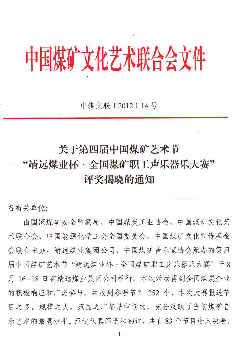 關于第四屆中國煤礦藝術節“靖遠煤業杯·全國煤礦職工聲樂器樂大賽”評獎揭曉的通知