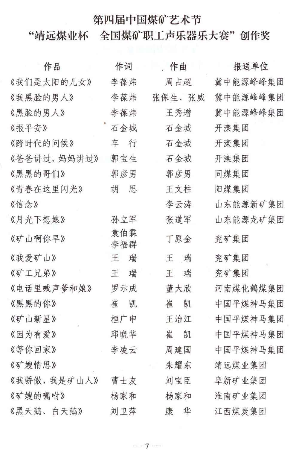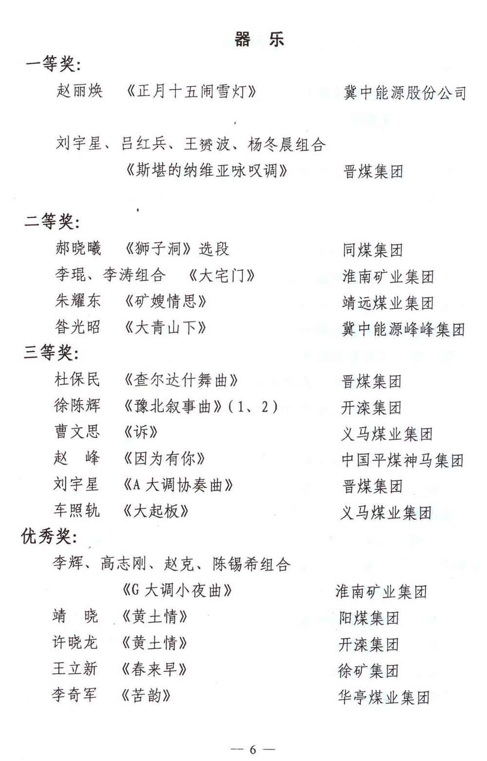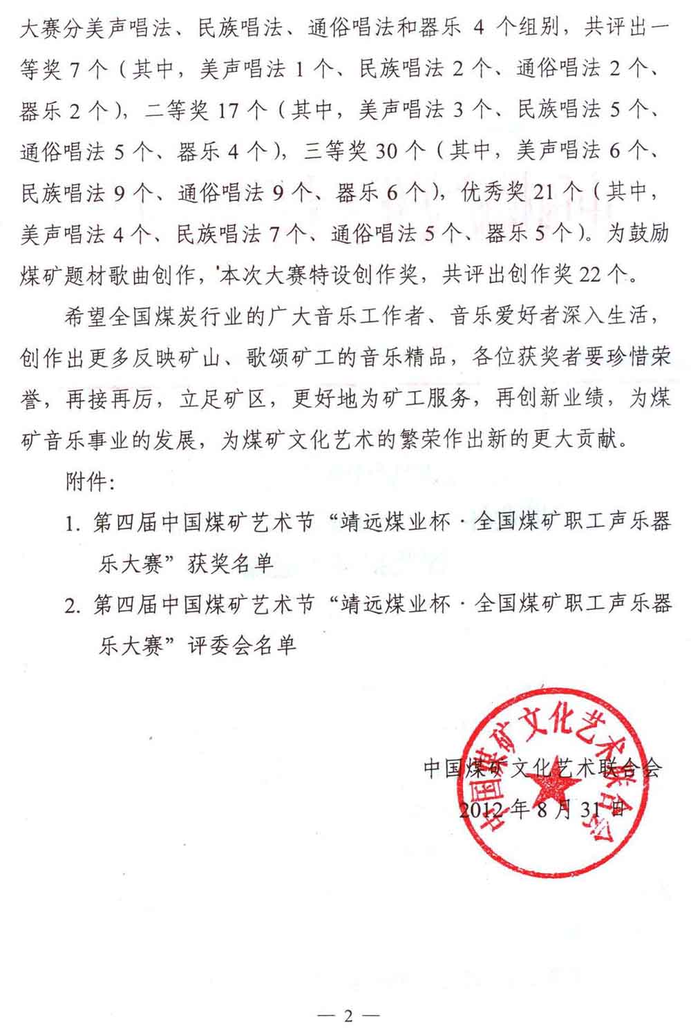 關于第四屆中國煤礦藝術節“靖遠煤業杯·全國煤礦職工聲樂器樂大賽”評獎揭曉的通知