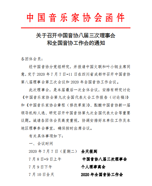 中國音協(xié):關(guān)于召開中國音協(xié)八屆三次理事會和全國音協(xié)工作會的通知的通知