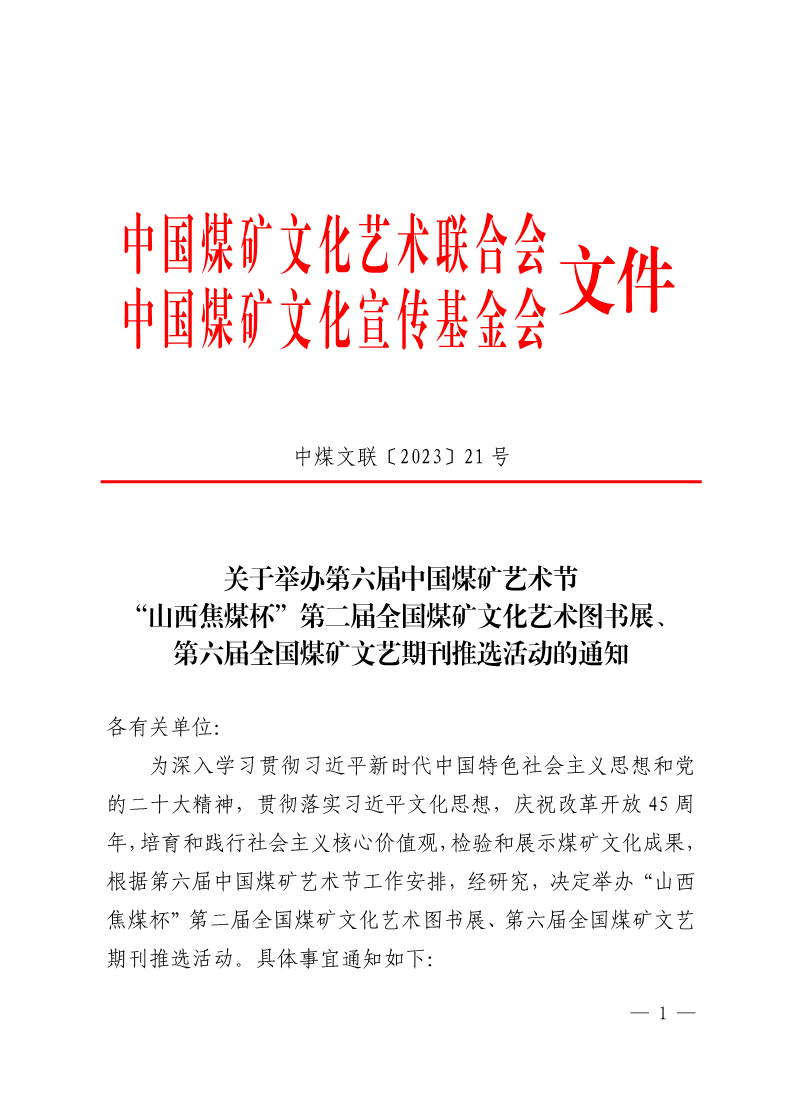 關于舉辦第六屆中國煤礦藝術節“山西焦煤杯”第二屆全國煤礦文化藝術圖書展、第六屆全國煤礦文藝期刊推選活動的通知