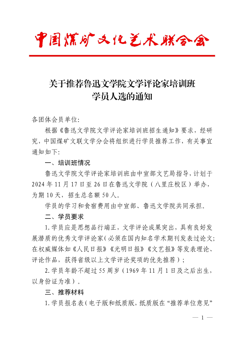關(guān)于推薦魯迅文學院文學評論家培訓(xùn)班學員人選的通知