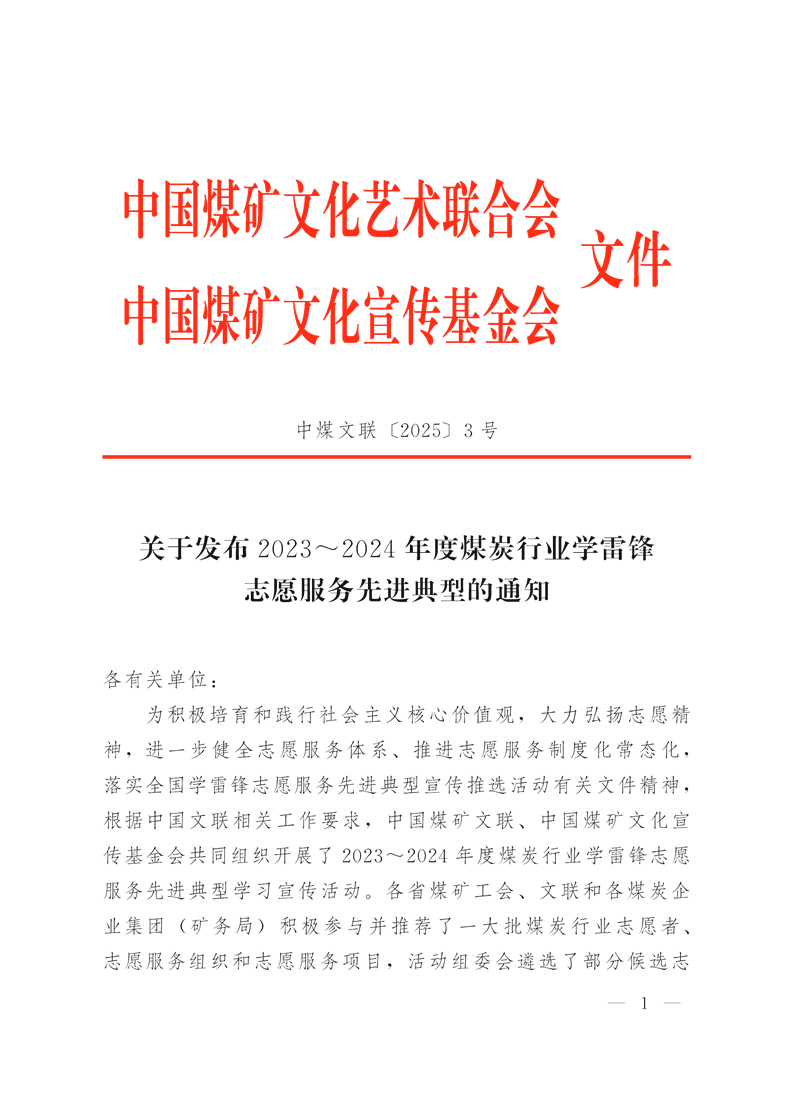 關于發布2023-2024年度煤炭行業學雷鋒志愿服務先進典型的通知