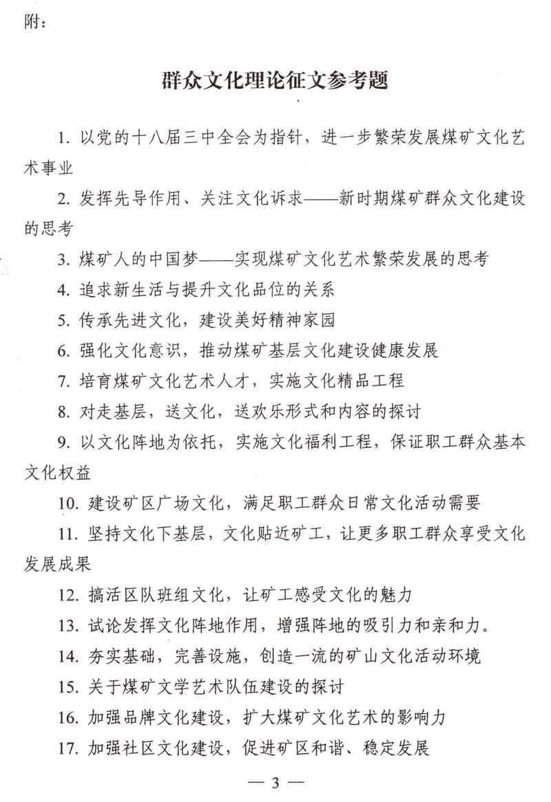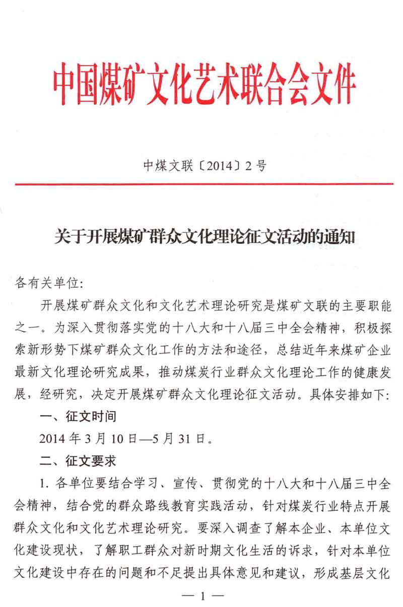 關(guān)于開(kāi)展煤礦群眾文化理論征文活動(dòng)的通知