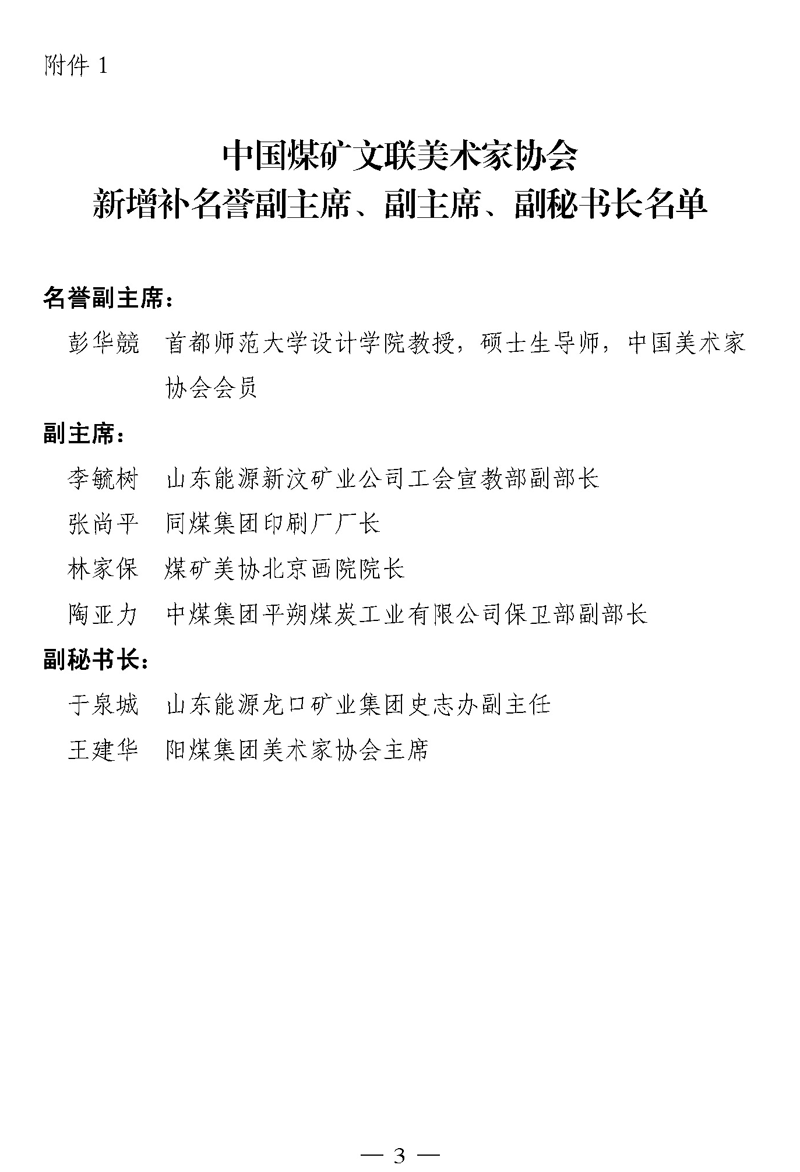 中國煤礦文聯美術家協會關于新增補相關機構人員和理事的通知
