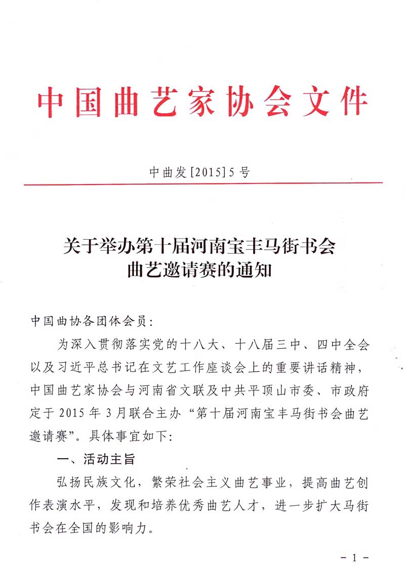 中國曲協(xié):關(guān)于舉辦第十屆河南寶豐馬街書會曲藝邀請賽的通知