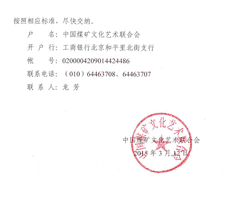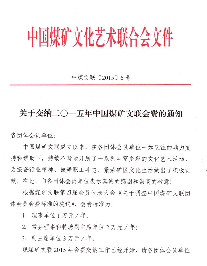 關于交納二○一五年中國煤礦文聯會費的通知