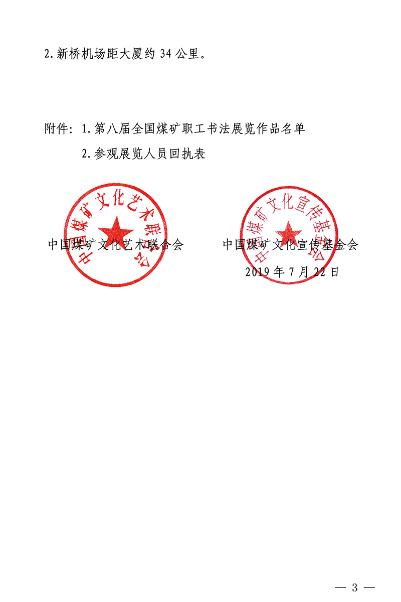 關(guān)于參觀第八屆全國煤礦職工書法展覽的通知 來源:中國煤礦文聯(lián) 作者: 時間:2019-07-26 【字體:小 大】 附件:· 關(guān)于參觀“慶祝新中國成立70周年”第五屆中國煤礦藝術(shù)節(jié)“中國書法大廈杯”第八屆全國煤礦職工書法展覽的通知(PDF版,含附件1)· 參觀展覽人員回執(zhí)表(附件2) 智能標(biāo)簽: 中國煤礦文聯(lián) 中國煤礦藝術(shù)節(jié) 相關(guān)內(nèi)容 分享到: 【打印正文】