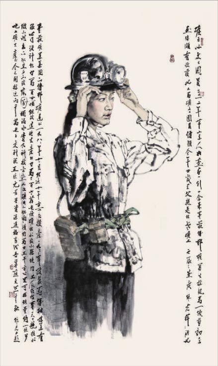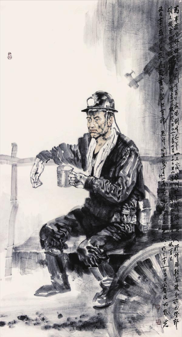 我自大學畢業后30年來少有機會對著人物直接畫寫生。去年3月,為了為農民工塑像全國中國畫展的約稿及5月為清華大學水墨人物畫研修班上課,開始重新拾起水墨人物寫生。回想起當年在學生時代畫模特的情景,那是有些為賦新詞強說愁的感覺,是找了些道具為模特化裝、生硬地擺各種動作。而這兩次為農民工和礦工寫生則是在生活中直接掘取鮮活的人物,表現他們歷盡滄桑的形象及生活瞬間,他們給我的視覺沖擊力與化妝模特是不一樣的。每每下筆都充滿了激情,筆下的人物當然也就生動傳神,落墨時往往想到的不是對比、塑造等已有的技法概念,而是如何用畫筆去貼近那些血肉之軀;用線時想到的也不是勾描那些形體,而是如何捕捉那些生動的瞬間。在用畫筆與那些鮮活形象的對話中常常不自覺地觸發出陣陣激情,同時每一筆下去也往往會遺憾自己的筆拙功差,不能盡如人意地表現出預想的效果,好在形象的生動總能再啟發靈感的筆筆生發,又往往會將錯就錯地再涂抹出另類的、出其不意的效果。