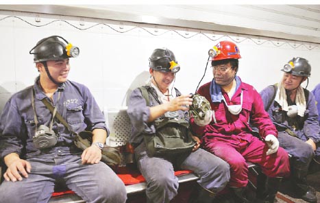 陪我們這幾天下井、寫生的是付村煤礦工會主席楊愛民,他家四代都是礦工,從他身上能領略到社會發展的腳步和新時代的風采。他爺爺是第一代礦工,親歷了棗莊煤礦的發展初期,那時中國山東剛剛有了重型工業的礦業開采,是中國由封建社會向工業社會轉型百年歷程的開始。他父親經歷了抗戰、鐵道游擊隊、煤城怒火等血與火的歲月。他是在新中國誕生不久后出生,隨著共和國的發展而成長起來的第一代礦工,由一個普通的礦工成長為礦領導,并且是做思想及組織工作的領導,有一種當家做主人的意味在其中。他為人豪爽、豁達,又不失細膩、智慧,說到自己的兒子這新一代的礦工時,他非常自豪地說:他們就更享福了,無論礦工的工作條件、工作環境、工作強度,還是礦工的政治待遇、生活待遇都發生了翻天覆地的變化。現在是地上花園、地下工廠,洗浴有如城市大浴池,吃飯可超過時下大酒店,采煤作業機械化、控制電子化,這和爺爺輩、父輩們的光身下井、匍匐前行、手工刨煤、人工拉煤,與‘下去不保命,上來一身黑’的工作條件比,真是今昔兩重天了。但礦工們每天下井5至800米進行作業,其意外風險和隱患還是存在的,這一行當仍是一個高危的行業,所以他們把抓安全生產作為頭等大事,國務院規定全國礦業單位的礦級領導都要輪流帶班與工人同時下井、升井。他是副礦級領導,每月在礦領導輪班中有8天與工人們一起下井工作,每次帶班下井都要在井下工作8個小時。我們去付村礦山的4天里,恰逢他帶班,一天沒見他,事后才知道了這些故事。
