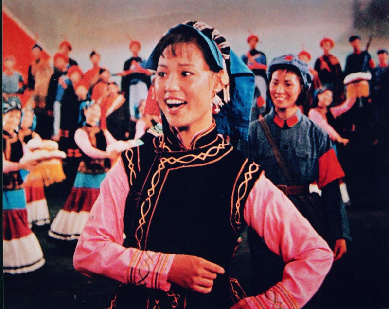 我和鄧玉華在拍攝《東方紅》大歌舞電影時相識。我們在紅軍過草地路過彝藏地區(qū)這場戲中擔(dān)重任:一個主唱,一個領(lǐng)舞。在拍電影前,要公演數(shù)場。戲進入我們上臺表演時,我隨著前奏曲步上了舞臺。當(dāng)我起舞時,鄧玉華開口一唱五彩云霞空中飄,天上飛來金絲鳥那直沖云霄的天籟之音,令我心顫,令我陶醉!公演、電影的成功,令舉國上下歡欣鼓舞,而鄧玉華演唱的《情深誼長》流入了眾人的心田。周恩來總理夸她聲音很好聽,同臺演出的演員和數(shù)千名工作人員夸獎她,廣大觀眾夸獎她,為中國又出了一名年輕的歌唱家而興奮!