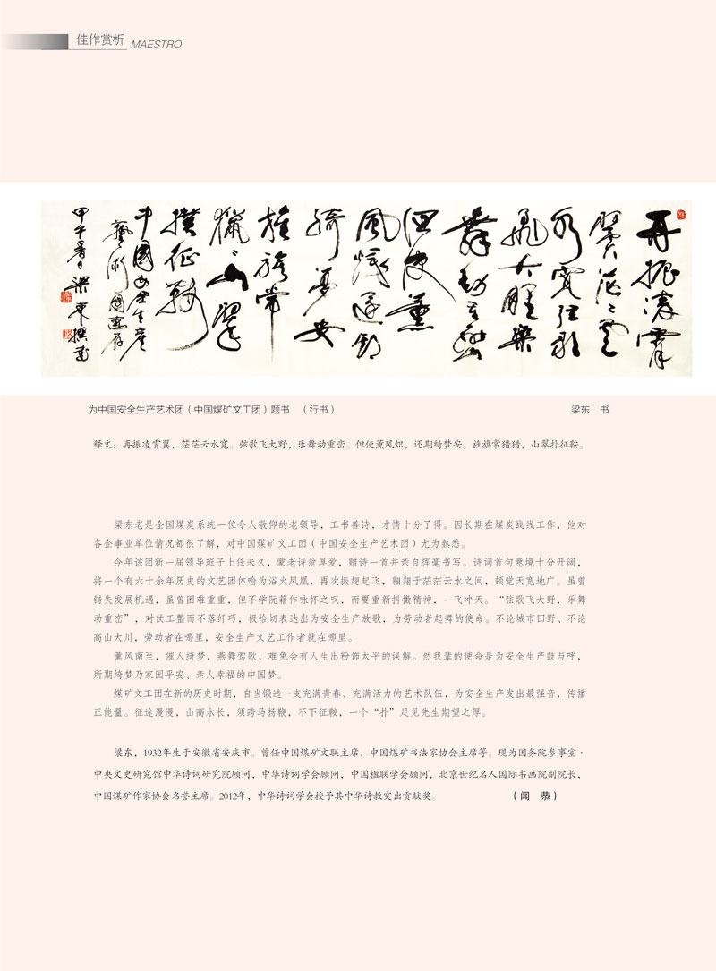 封二 為中國安全生產(chǎn)藝術(shù)團(tuán)題書(行書) 梁 東