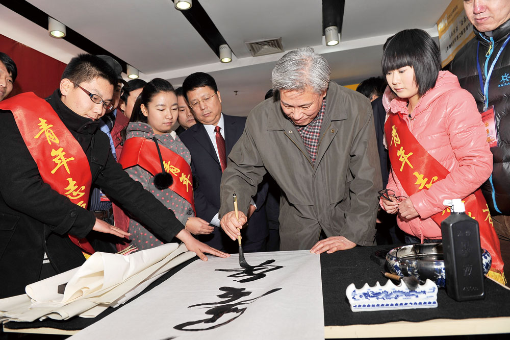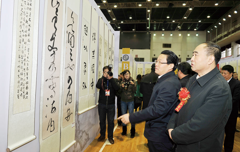 中國煤礦文聯(lián)主席梁嘉琨為書法展題字