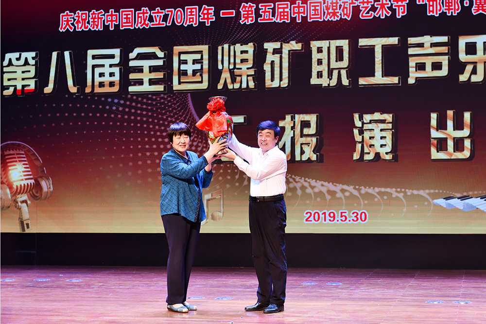 匯報演出前,龐崇婭向展演承辦單位冀中能源峰峰集團(tuán)贈送了第五屆中國煤礦藝術(shù)節(jié)“特別貢獻(xiàn)獎”杯。