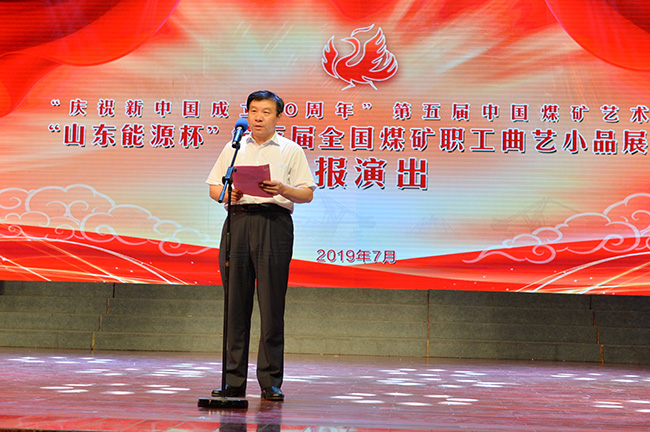 宿洪濤代表山東能源集團致辭。他說,文化是一個民族的靈魂,是推動經濟發展的重要支撐,也是企業核心競爭力的關鍵元素。山東能源集團始終堅持企業發展、文化先行,形成了獨有特色的“超越文化”體系。通過組織多種形式的文藝活動,以先進理念指導實踐,產生了強大的核心凝聚力,形成了企業最根本、最持久的競爭優勢。他指出,山東能源集團將以此次展演為契機,繼續加大職工文化工作力度,加快企業文化發展步伐,以高度的文化自覺,繼續支持全國煤礦文化藝術事業,為全國煤炭行業文化大發展、藝術大繁榮做出更大貢獻。