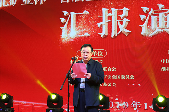 匯報演出前,張強向活動承辦單位淮北礦業集團贈送了第五屆中國煤礦藝術節“特別貢獻獎”杯。