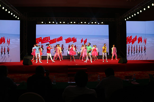 10月24日晚,匯報演出在淮北礦業會議中心舉行。中國煤礦文聯副主席張強,淮北礦業集團工會第一副主席劉杰,中國煤礦文聯副主席徐迅,中國煤礦文聯特聘副主席劉俊,中國煤礦文聯秘書長盛軍,淮北礦業集團工會副主席黃劍,淮北礦業集團有關部室負責人和干部職工代表等300多人觀看了匯報演出。