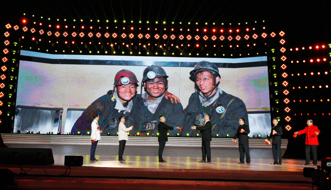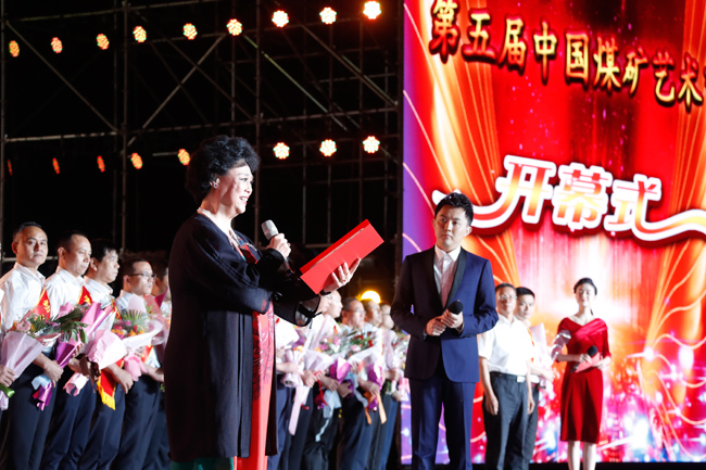 演出期間,著名歌唱家鄧玉華和開(kāi)灤集團(tuán)工會(huì)主席王和賢一起向全國(guó)煤炭工業(yè)先進(jìn)集體、勞動(dòng)模范和感動(dòng)中國(guó)的礦工等先進(jìn)代表送上了美好的祝福。
