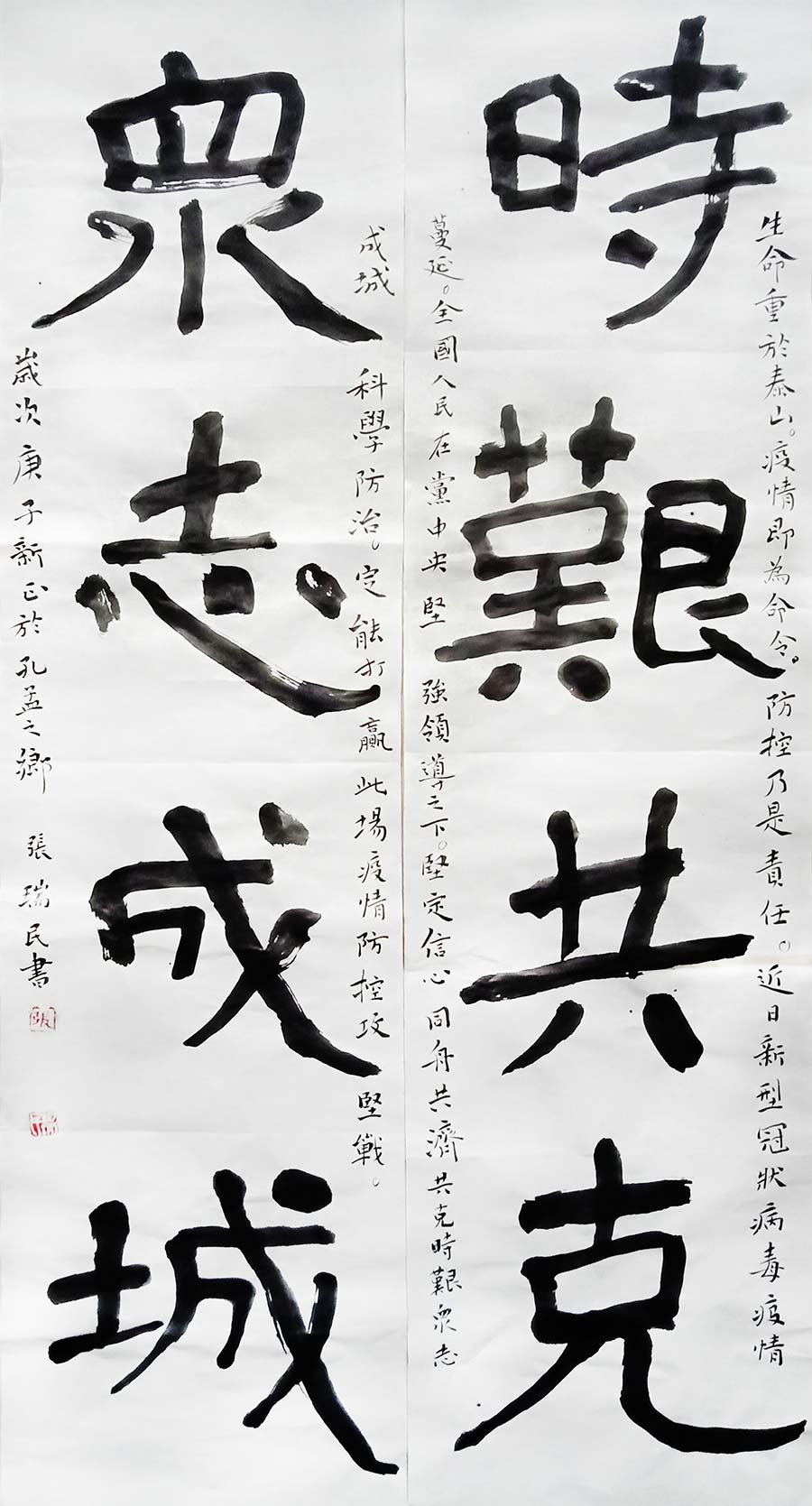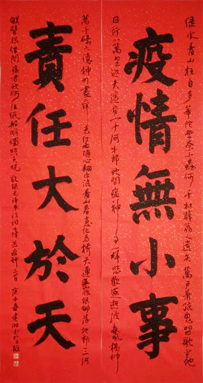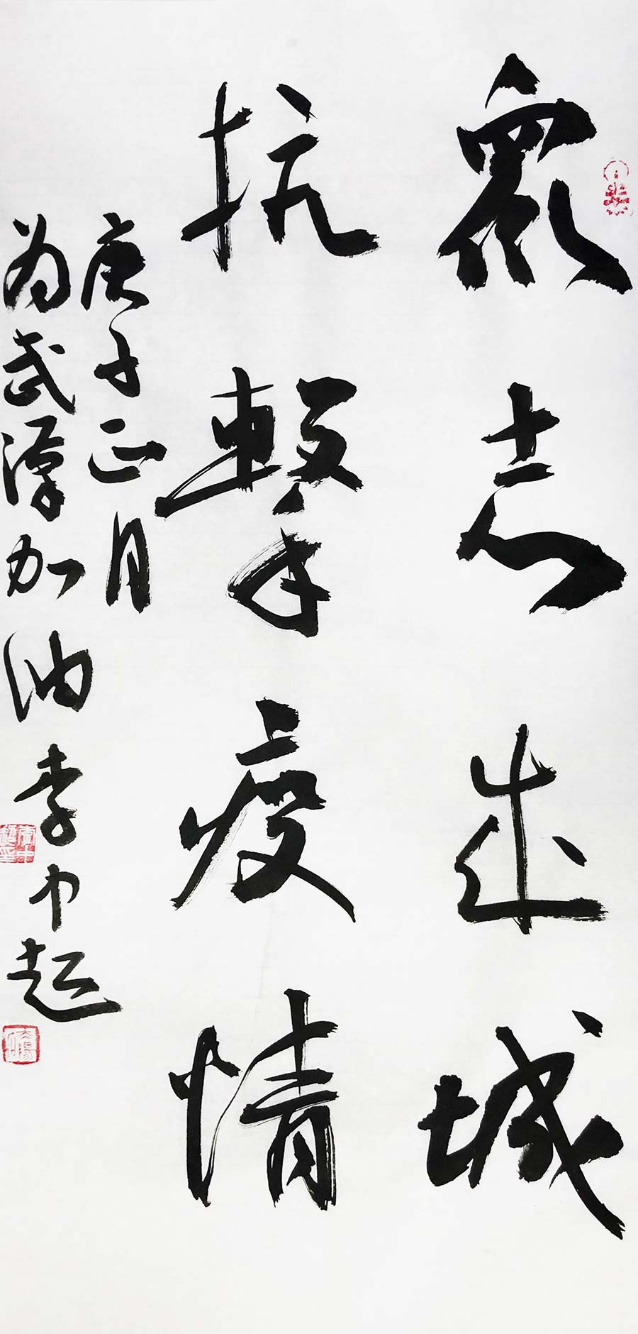 庚子新春,一場來勢洶洶的新型冠狀病毒感染的肺炎疫情在全國蔓延。面對疫情,習近平總書記作出重要指示,要求“廣泛動員群眾、組織群眾、凝聚群眾。緊緊依靠人民群眾堅決打贏疫情防控阻擊戰”。在武漢、在全國各地,無數奔赴在疫情一線的工作人員同舟共濟、眾志成城,冒著各種風險堅守崗位,投身于這場必須打贏的疫情防控狙擊戰。在這場抗擊疫情的戰斗中,文藝工作者不能缺席。中國煤礦文聯迅速組織全行業文藝工作者積極行動起來,為堅決遏制疫情蔓延勢頭、打贏疫情防控阻擊戰鼓與呼,創作出一大批各種形式的文藝作品,鼓舞全民士氣,致敬白衣天使,慰問病患同胞,傳遞人間真情,弘揚社會正能量。中國煤礦書法家協會迅速行動起來,組織煤礦書法家,用心研墨,以愛為紙,將自己的創作激情,化作了對疫情的關切之情,兩天時間創作了數百件鼓舞士氣,振奮精神的書法、篆刻作品。點畫間傳達了550萬煤礦工人聲援武漢,抗擊疫情的信心和決心,表達了對江城武漢的祈福、對偉大祖國的祝愿。