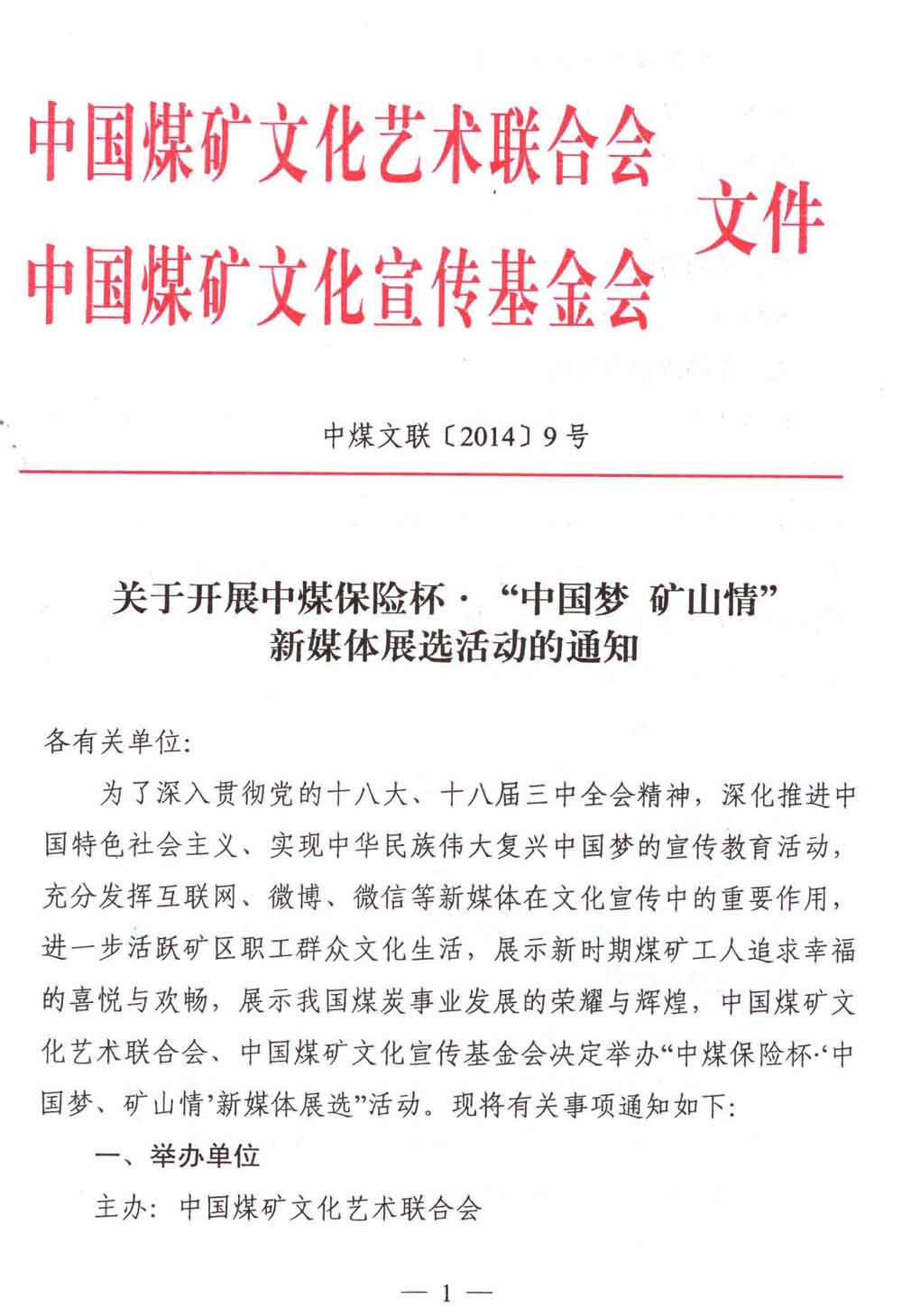 關于開展中煤保險杯“中國夢 礦山情”新媒體展選活動的通知